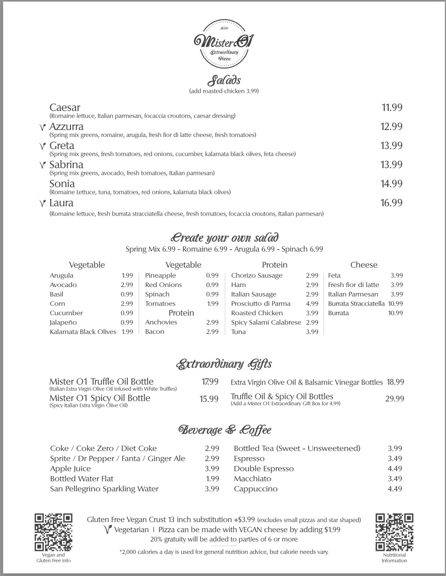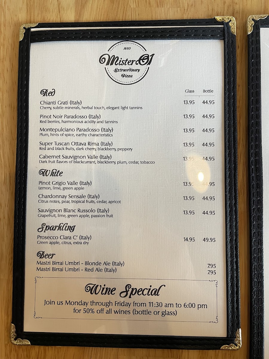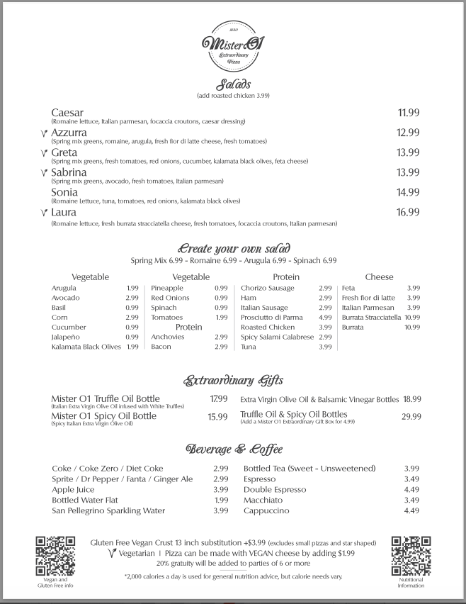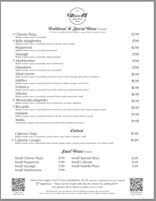Introducing the Menu at Mister O1 Extraordinary Pizza - Oviedo
