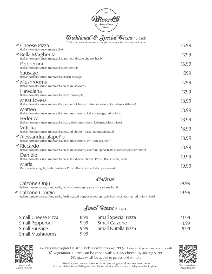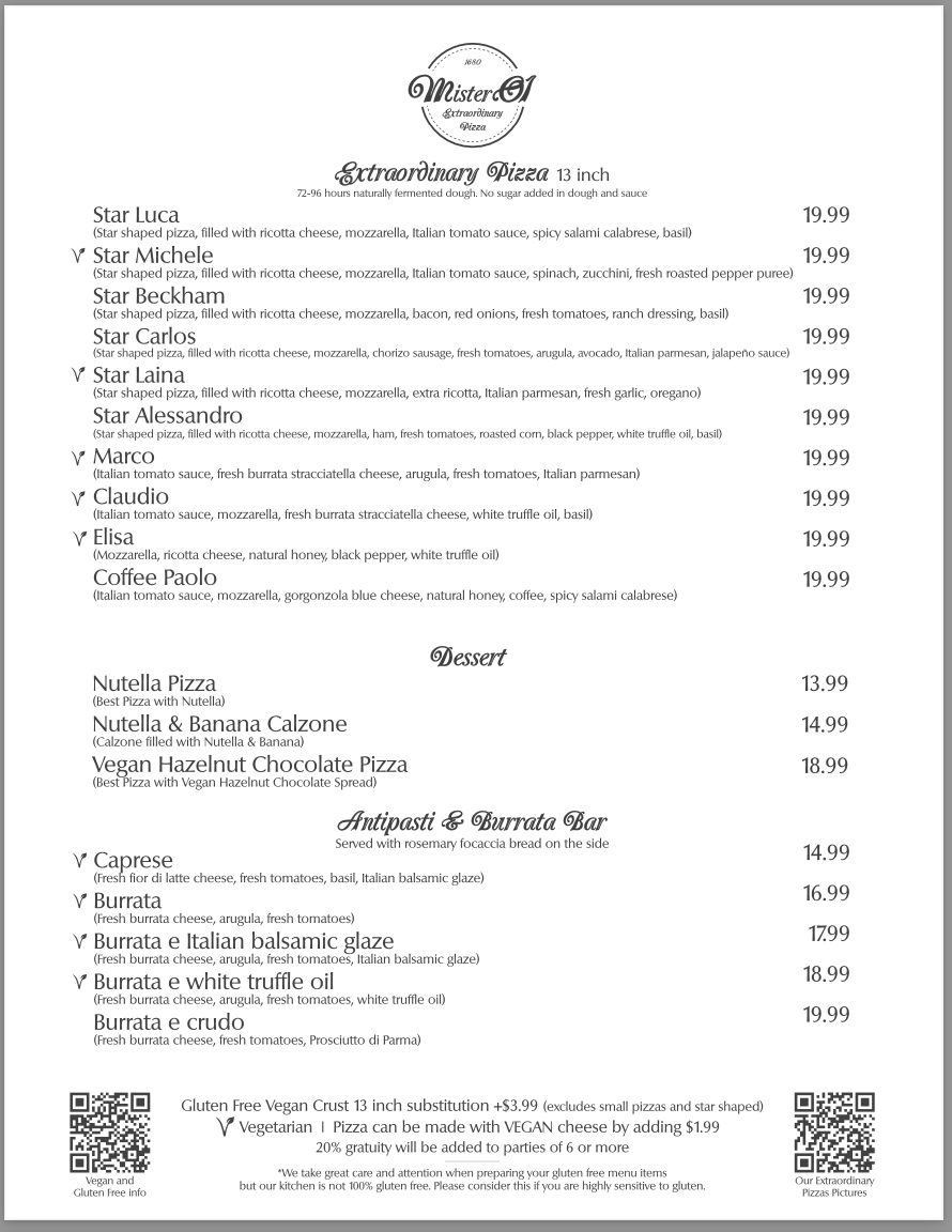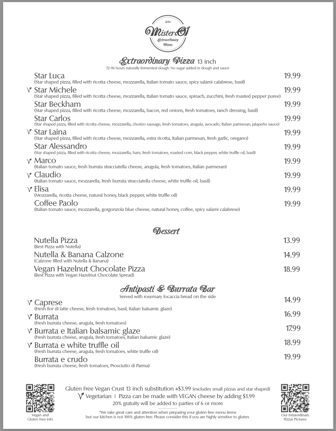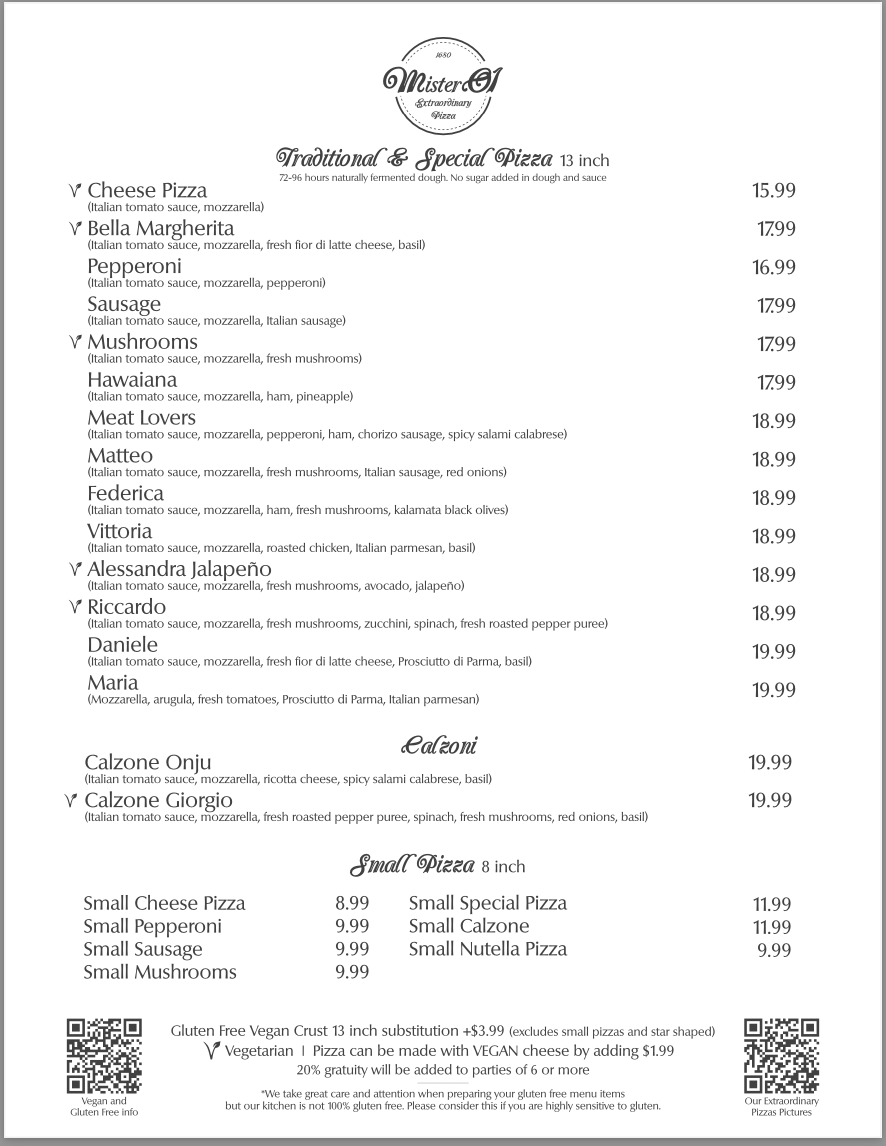 Introducing the Menu at Mister O1 Extraordinary Pizza - Oviedo